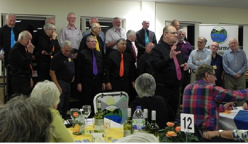 2018 also saw us strike up a friendship with the caravanners and Motorhomers of Rotary International. We were the after-dinner entertainment at the Three Counties Showground and they invited us back for a repeat performance in 2021. The pic below shows some of the Rotarians joining in with us.