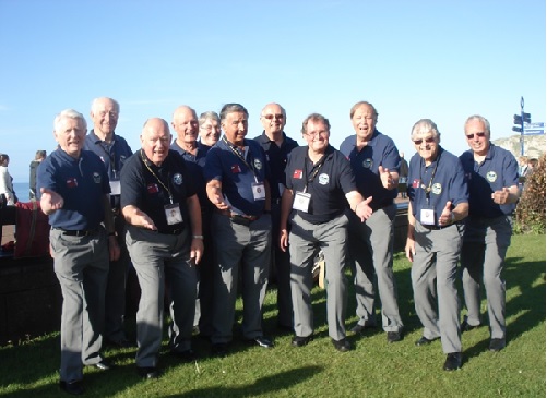 In March 2013, ‘8 To The Bar‘ were invited to perform at a Music Festival in Laval, France. Unfortunately Neil Burrows couldn't be present but the seven singers received a rapturous applause. They are pictured above (l to r) Derek Styles, Chris Dobbins, Chris Hartwright, Kevin Fisher, Dave Wilkinson, Andy Parsloe, Eddie Howell.